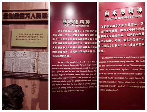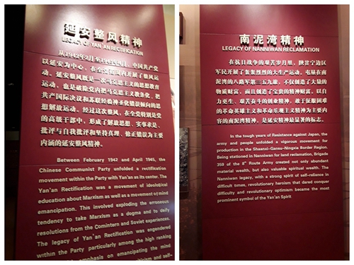 在杨家岭、枣园,走在略有些硌脚的鹅卵石路上,面对那一孔孔承载了深厚中国历史的窑洞,一幅幅珍贵的照片,一个个斑驳无语的文物,心中感慨万千,新中国的缔造者们在延安短短14年的时间里,在这样物质、经济条件极其匮乏的条件下,运筹帷幄,领导建立了抗日民族统一战线,实现国共两党的第二次合作;展了大生产运动、练兵运动和整风运动,有力地推动了抗日战争和解放战争的胜利进程;先后召开了瓦窑堡会议、洛川会议、中国共产党第七次全国代表大会等民族悠关的重要会议,为中国革命指明了方向。