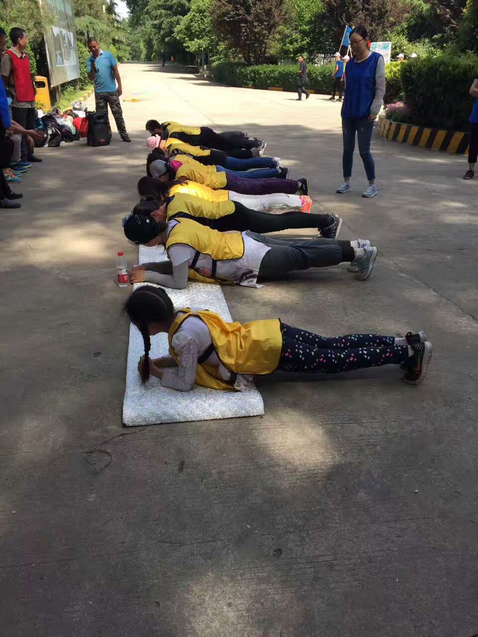接下来,随着教练的一声哨响,我们的拓展训练以几个小游戏开启了我们活动的破冰之旅,突破极限,挑战自我,经过大家一起努力,我们大团队以4秒7的速度迅速围成最小的圆圈,原本不太熟悉大家顺利融汇成一个大集体。然而,拓展训练也要有竞争的元素,教练随机将我们一行分成了3组(红队、黄队、蓝队),各队迅速完成了彼此了解、熟悉以及培养默契。
