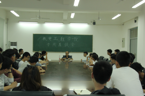 为提高机电工程学院学生学习的积极性和主动性,帮助同学们营造更好地学习氛围,解决学生学习过程中的困惑,学院于5月17日晚19:00在南山书院201会议室召开“我与领导面对面”系列活动之“学风建设永远在路上”学风建设座谈会,诚邀机电工程学院党委副书记、副院长曹体进老师,参加此次活动的有机电工程学院团总支学生分会副主席许启林,学习部部长谢燕朋、副部长王璐瑶,学习部全体委员以及2015、2016级各班学习委员。