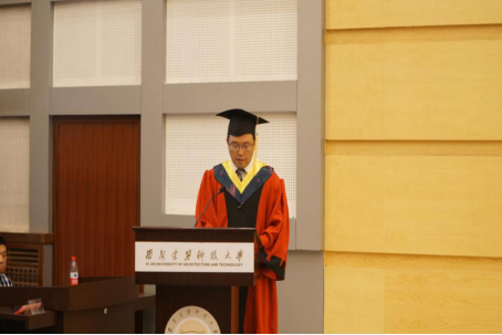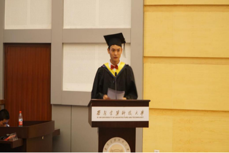 随后,教师代表孙伟老师上台致辞,他对同学们圆满完成学业表示诚挚的祝贺,并提出了一些宝贵建议,鼓励同学们在今后的工作岗位上努力学习。希望同学们带着美好的青春记忆、带着练就的过硬本领、带着师长们的美好祝福,在新的人生征程中争当建大的精英、争当社会的精英,并衷心祝愿同学们平安幸福、常回家看看。之后优秀毕业生代表崔俊航同学作为毕业生代表发言,郑重而深情地表达了对母校、对师长培育之恩的感激,从草堂到雁塔,四年的大学生活让大家从稚嫩迈向成熟,无论今后身在何处,2017届毕业生定当秉承建大“自强、笃实、求源、创新”的校训、继续发扬我院“勤、勇、忠、雄”的机电精神,积极投身到祖国建设中去,以优异的成绩回报学院,感恩母校。