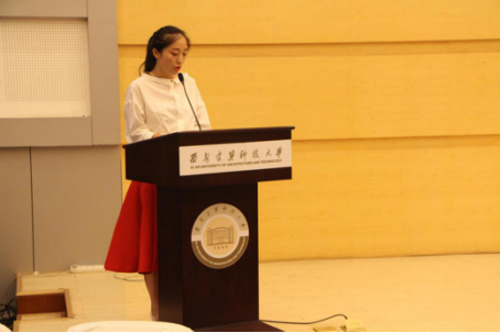 在播放了一段由毕业班辅导员崔璐老师与几名学生精心准备的视频后,崔老师上台发言,她说道:“从草堂遇到稚嫩的你们到此刻还有一周时间就要告别,难说再见,此刻的相伴显得愈加珍贵。”言辞恳切的表达了对2017届毕业学生的不舍和叮咛。