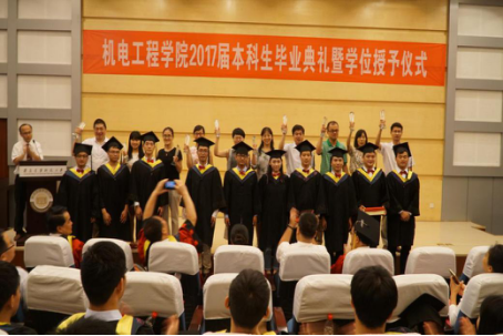 在全体毕业生奏唱《高举着民族复兴的伟大旗帜》校歌声中,机电工程学院2017届本科生毕业典礼暨学位授予仪式圆满结束。