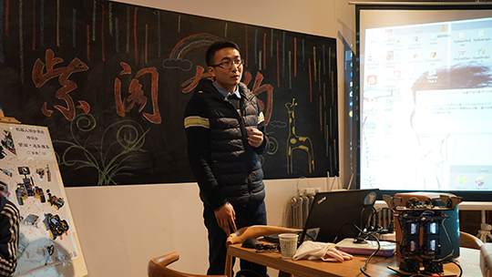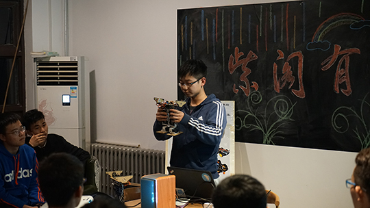 随后,尚龙学长结合自身竞赛经历谈了一些他的看法。学长简明扼要地阐释了视频中机器人的制作过程后,告诉大家机器人竞赛并没有想象中的那么难,极大地激发了同学们的自信心。学长再次强调了团队的重要性,告诉同学们要学会在团队中发挥出自己的特长,达到1+1>2的效果。同时鼓励同学们要勇于尝试,从而得到锻炼。