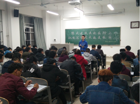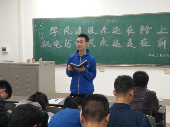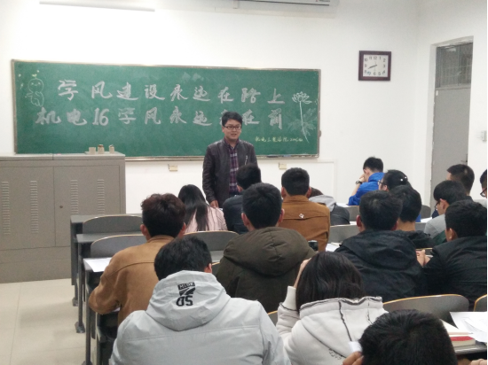 春暖花开展新意,机电学子论学风。2017年3月19日晚,机电工程2016级班干部代表于学府城开展了学风建设专题会议。本次会议由2016级辅导员王亮亮、魏斌斌老师主持召开。