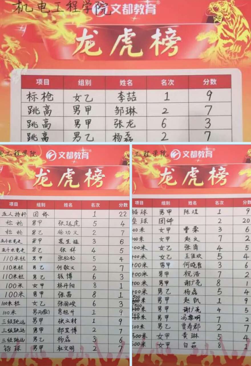 至此,本次运动会正好进行了一半,令人动容之处却数不胜数,因为团结,我们目前赛事成绩名列前茅;因为有爱,我们获得了其它学院的赞赏;因为优秀,我们还需在接下来的比赛中继续保持这男儿本色和巾帼热情,让机电工程学院在我们的努力中变成一个不可超越的传奇!