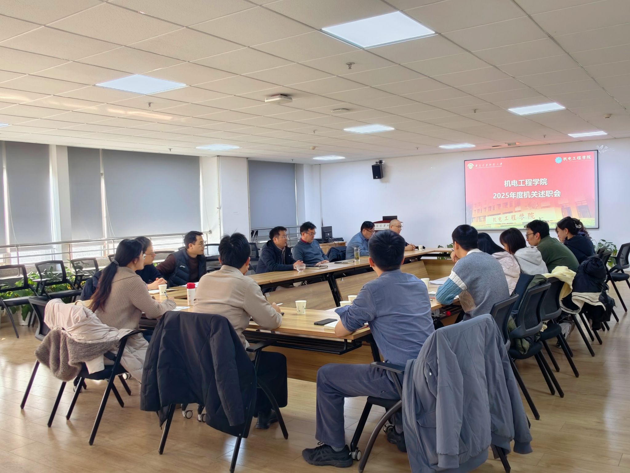 1月21日下午,机电工程学院在工科大楼713会议室组织召开了2025年度管理岗位述职会。学院领导班子成员,院长助理参会,14名管理岗位工作人员进行述职,会议由执行院长朱丽华主持。