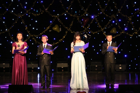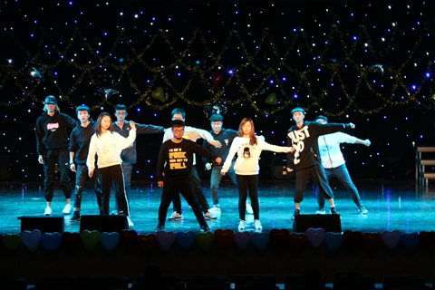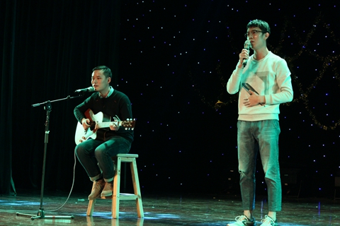 台上台下成融成了激情四溢的海洋。美好的时光总是短暂的,在张皓老师与任远老师的弹唱中,晚会完美落幕。