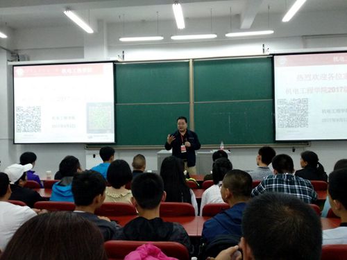 学院党委书记王继武老师就“大学”这个话题与在场新生和家长进行深入探讨。首先,王书记提出“大学教育有什么意义”。他表明,大学不是安乐乡,而是人生很重要的转折点,在这个时间点新生应该更奋发图强。进而纠正了部分学生和家长的错误观点。他说,“成年人的世界会比未成年人难得多,因为人是一直成长的,所以需要承担的也会更多”。 随后,王书记简述了机电工程学院的现状并预测了学院将来发展趋势。“一个有理想的国家,其发展必定离不开机械相关专业的支持,所以学院的未来必将充满光明”他说,“专业的发展也离不开相关人才的努力,所以这份重担也落在了所有机电学子的身上”。所以身为机电人,我们不需要自卑,需要的是自己不懈的努力,为自己打造一个精彩的未来。 接着王书记就大学生如何过好大学生活做出几点建议:学好自己的专业知识。只有用过硬的知识来武装自己,才会让自己在以后的舞台中占有一席之地。在大学期间要多阅读课外优秀读物,从而拓宽自己的知识面。养成一个良好的生活学习习惯,与身边的人建立起良好的关系。