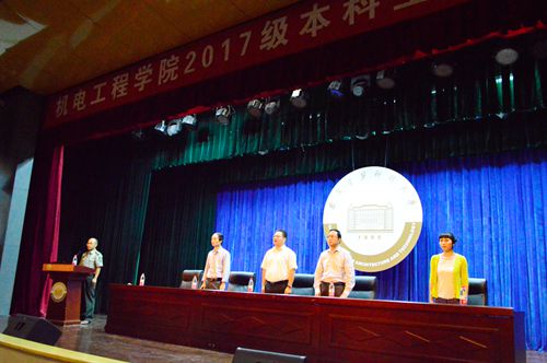 为更好地让新生们融入到机电大家庭,机电工程学院于9月7日下午14:00在南山小礼堂隆重举办了2017级本科生开学典礼。出席本次典礼的领导有机电工程学院党委书记王继武,院长蔡安江,副院长贺利乐,副院长史丽晨,教学办主任耿素花,科研办主任郭雅琳,团委书记任斐然以及各专业教师代表。参加此次开学典礼的还有2014级辅导员张贤哲老师,2015级导员任远老师,团委副书记、2016级辅导员王亮亮老师,2016级辅导员魏斌斌老师,2017级辅导员张皓老师,机械基础实验中心主任、机制1701班主任闫浩老师,机制1704班主任罗飞同学以及学院2017级全体本科生。学院党委副书记、副院长、纪委书记曹体进老师担任典礼的主持人。
