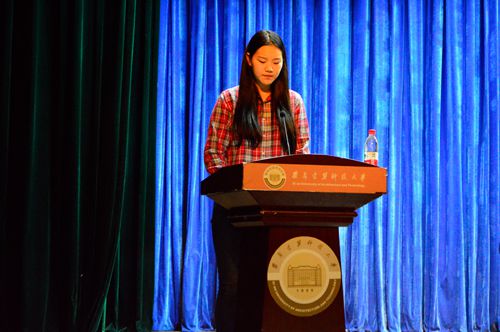 2017级新生代表、车辆工程1702班闫芷琪同学代表全体新生在典礼上畅谈了自己对大学的憧憬与梦想,对“勤、勇、忠、雄”院训的理解与感悟,并代表全院400多名新生庄严宣誓:用热血与汗水,铸就无悔的青春。让自己无愧于"建大人"的名字,让机电工程学院因我们而拥有新的骄傲,让祖国为我们的将来而自豪!