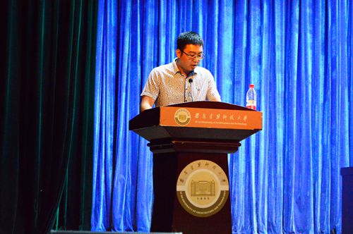 教师代表、机械电子党支部书记王海涛老师就大学生活中的理想与现实等方面与新生们做了深入交流。王老师通过实例来阐述理想与现实的巨大落差,而改变这个现状的唯一武器就是知识。所以学子们应该自己努力拼搏,抓住这个改变自己的大好时间,不容一丝懈怠。他以院训来勉励学子们勇往直前,追寻自己的未来。“老师甘愿此刻帮你擦掉汗水,避免毕业后的你流下孤单无助的泪水;老师甘愿你在大学时犯下千万个无知的错误,却不允许工作后的你在岗位上出现任何瑕疵。”这就是一位老师的职责。