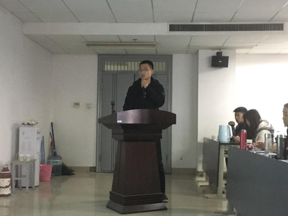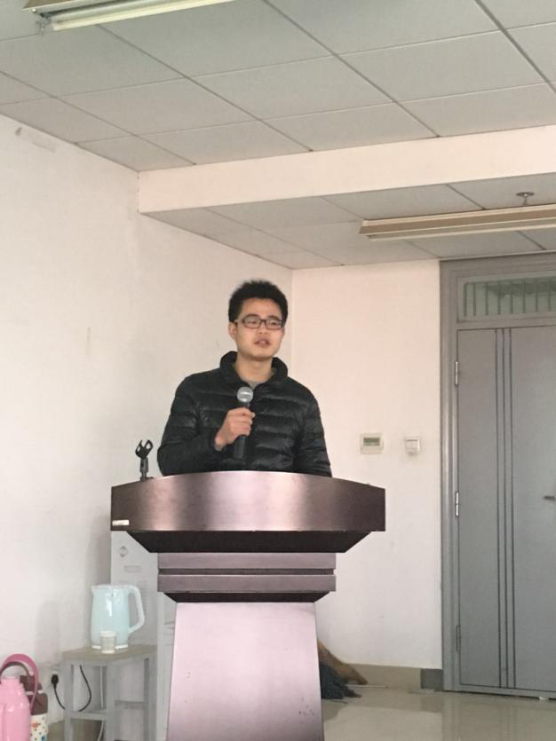 随后机电工程学院16级的硕士研究生李治强和郭宇轩同学分别分享他们的小论文。李治强同学的小论文《固定结合面微凸体相互作用的机理研究》是在对国内外研究现状的调查的基础上,深入研究了对波纹度的分离,建立一种结合面新模型。郭宇轩同学则是通过背景,制备方法,实践应用等多个方面的阐述了他的小论文《超亲水表面的制备方法》。
