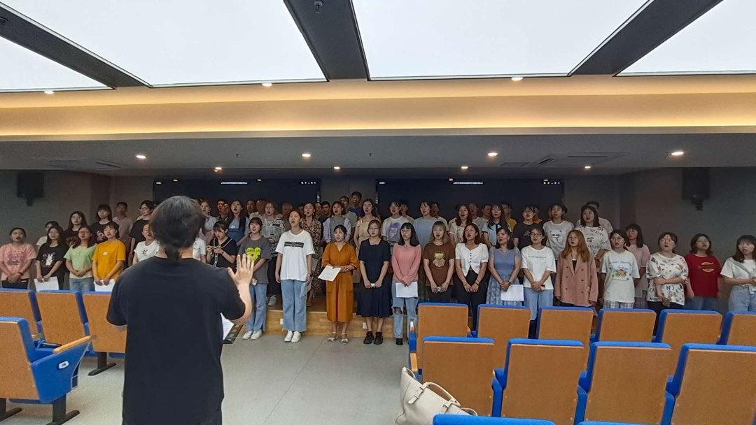 晚7点,合唱联排正式开始。排练过程中,合唱队员们个个精神饱满,昂首挺胸,他们在激昂的音乐声中抒发了自己的爱国之情,用嘹亮的歌声唱出了自己的少年意气,更是唱响了我院学子的热血青春与蓬勃朝气。