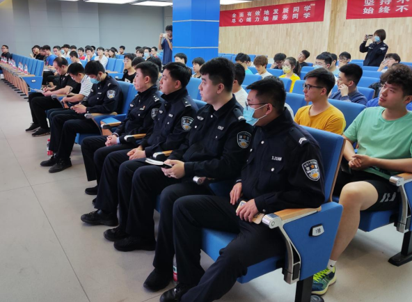 最后,校保卫处干部周勇向同学们介绍了草堂校区报警中心、警务室、治安办和一站式服务大厅的相关情况,对校园交通秩序、消防安全、季节性事故案件预防等提出要求。