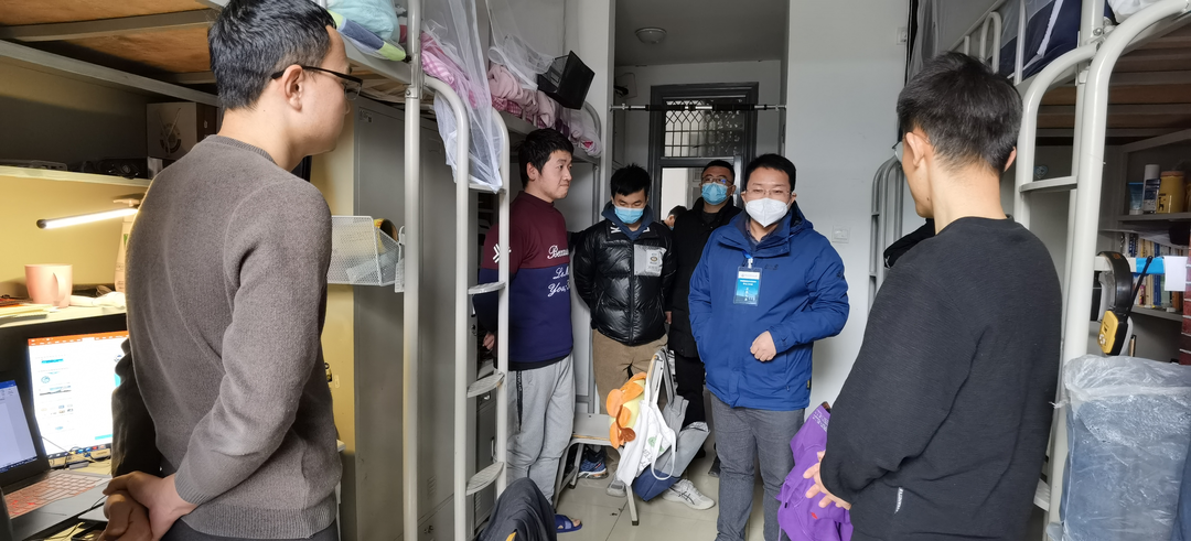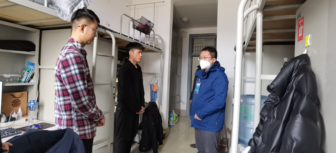 学院高度重视疫情防控工作,贺伟要求全体辅导员增强责任意识,坚决做好学生宿舍疫情防控工作,确保学生生命健康安全和校园稳定。走访过程中,贺伟与学生们亲切交谈,详细了解当前学生学习、生活等情况,重点对新冠疫情及出血热防控、宿舍卫生、冬季用电安全等方面进行详细了解,强调了树立宿舍安全责任意识及疫情期间配合学校做好疫情防控的重要性,围绕学生反馈的问题逐一进行解答和记录。他强调,在疫情严峻背景下,每一个同学都要绷紧疫情防控之弦,绝不能松懈,学校及老师都将为同学们做好一切保障工作,特殊时期,一定要佩戴好口罩,勤洗手,做好自身体温监测和上报,保持宿舍卫生清洁、不互相串门,注意个人防护,按时参加线上学习。