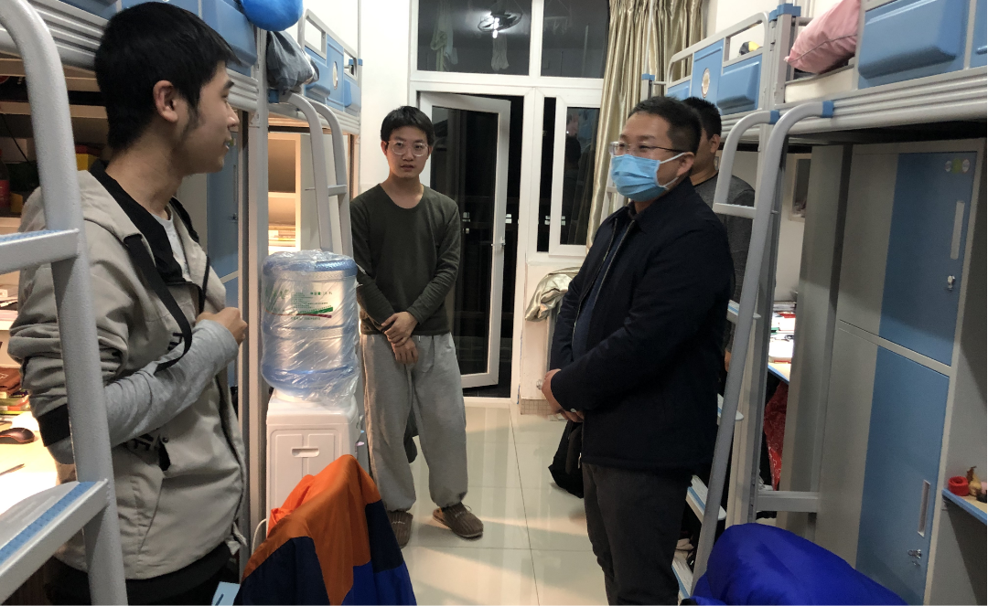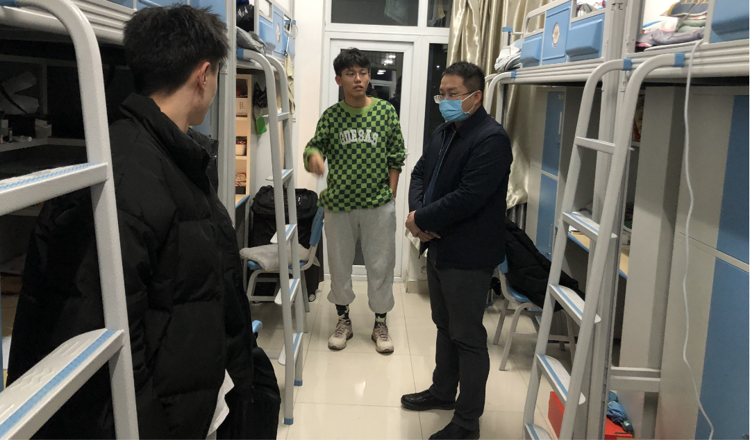 近期,西安市疫情防控形势严峻,为保障学生安全健康,将疫情防控期间学生管理工作落到实处,筑牢校园安全防线,同时疏解学院学生在封闭管理期间遇到的压力,确保疫情防控期间宿舍环境的安全。12月21日至30日,学院党委副书记、副院长、纪委书记贺伟带领学院学生工作办公室辅导员深入学生宿舍,走访慰问学生。