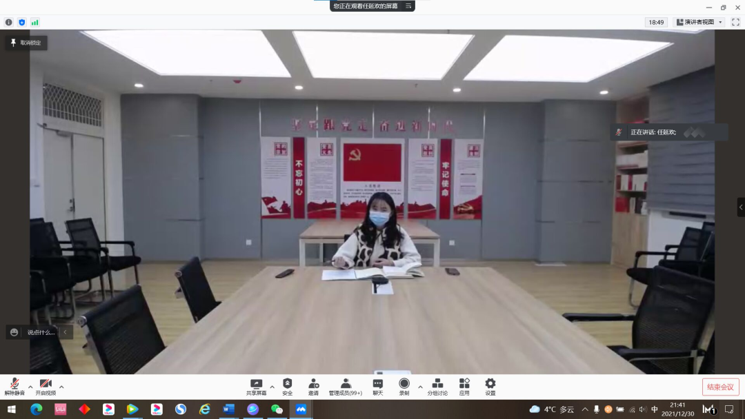 任延欢从正确认识疫情形势、提高政治站位、强化责任担当、发挥先锋模范作用四个方面对与会同学提出具体要求。正确认识疫情形势,在落实各项防疫抗疫举措中挺身而出,走在前、做表率;提高政治站位,入党积极分子要以党员的标准严格要求自己,干在前、争在前、冲在前,把做好防控工作作为践行初心使命、体现责任担当的试金石和磨刀石;强化责任担当,入党积极分子、学生干部要深入学生群众,团结带领全体同学主动参与到学校学院组织的线上、线下志愿服务中,积极宣传防疫要求,普及防控知识,以实际行动彰显青春风采;发挥先锋模范作用,全体入党积极分子、学生干部要立足岗位,积极行动,勇担重任,充分发挥先锋模范作用,力所能及的做好各项工作的“第一响应人”。