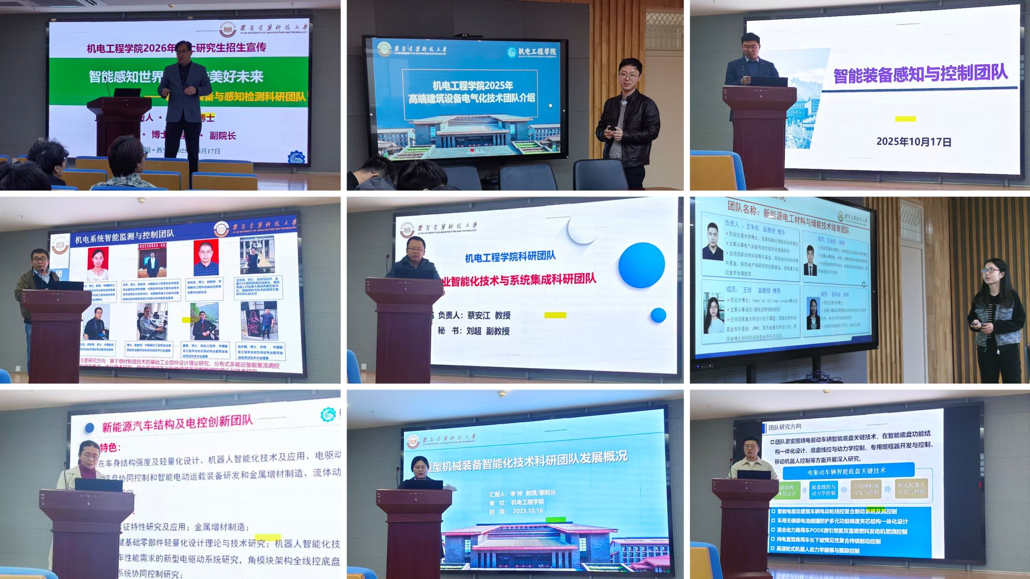 本次会议特邀9支机械、电气工程领域的科研团队现场宣讲。各团队围绕团队定位与概况、主要研究方向与关键技术、科研平台与丰硕成果,以及毕业生的就业前景与升学去向等多个维度展开深入讲解。宣讲会现场气氛热烈,互动交流环节与会学生围绕团队招生要求、科研项目参与方式、研究生培养模式等问题积极提问,各团队负责人及成心细致解答。